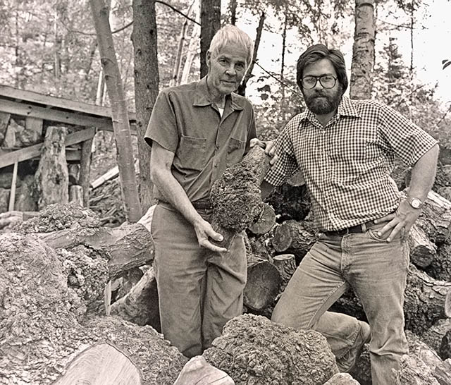 Melvin and his son Mark in "The Burl Yard" in Henniker, NH, circa 1979